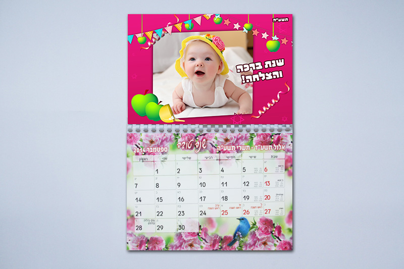 הלוח שנה מכיל 12 עמודי כרומו איכותיים, עם תמונה של הילד מודפסת על נייר סובלימצייה יוקרתי. אפשרות להקדשה אישית בחזית.