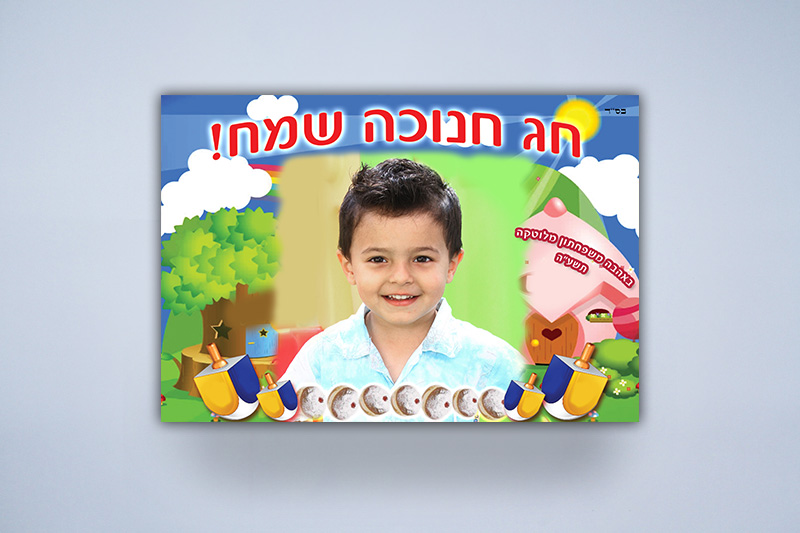 מגנט איכותי לחג החנוכה. תמונה גדולה של הילד לצד הקדשה אישית.