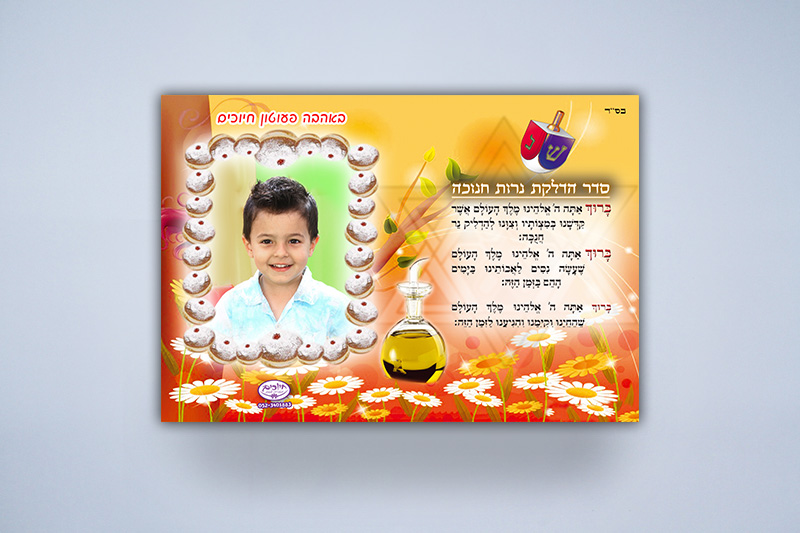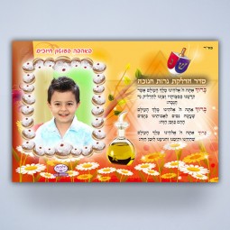 מגנט איכותי עם ברכת סדר הדלקת נרות חנוכה. תמונה גדולה של הילד לצד הקדשה אישית.