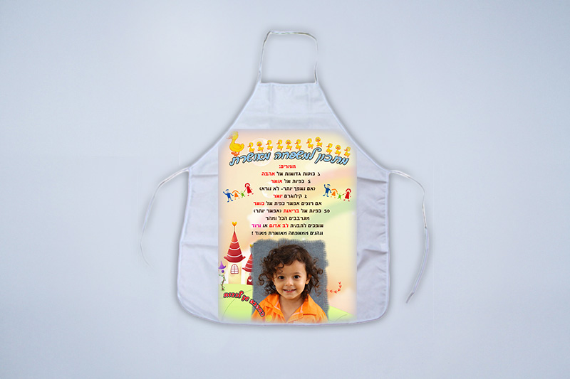 סינר לילד או הילדה עם תמונתו על הסינר ומתכון למשפחה מאושרת.