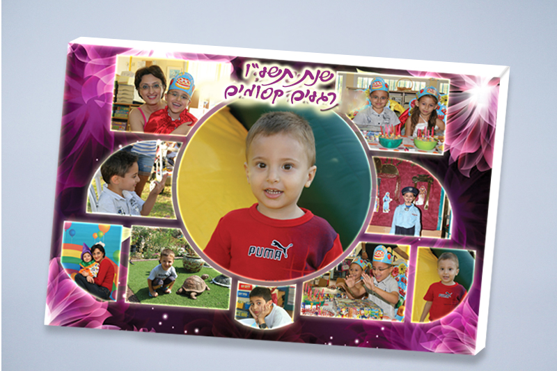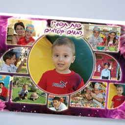 קולאז' עם עשר תמונות מרגעים מיוחדים שהיו במהלך השנה שחלפה מודפס על קאפה איכותית בגודל 30/45 עם הקדשה אישית ומסגרת מיוחדת וצבעונית.
